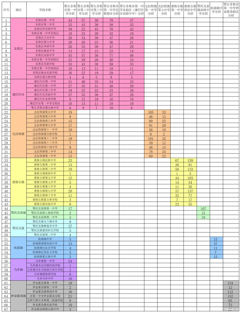 鄂尔多斯市2025年中考自治区示范性、优质普通高中分招名额分配